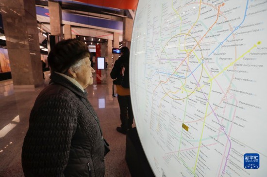 3月1日,在俄羅斯莫斯科,一名乘客查看地鐵大環(huán)線的地圖。