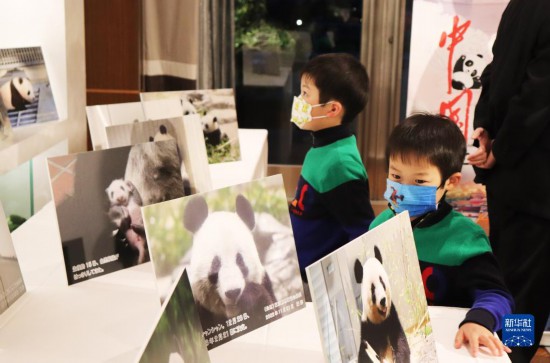 3月17日,小朋友在日本東京“熊貓友好交流之夜”活動(dòng)現(xiàn)場觀看熊貓照片。