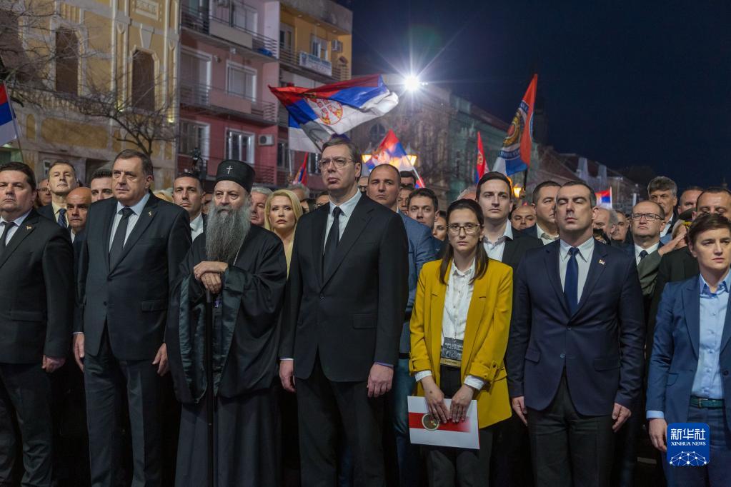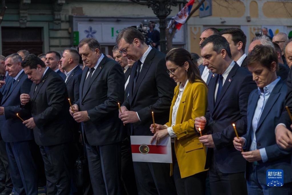 紀(jì)念儀式當(dāng)晚在塞北部城市松博爾舉行。數(shù)以千計民眾聚集在市中心,為遇難者默哀。塞爾維亞總統(tǒng)武契奇、總理布爾納比奇等政府官員以及波黑主席團塞族成員多迪克出席儀式,并點燃手中的蠟燭悼念死難者。