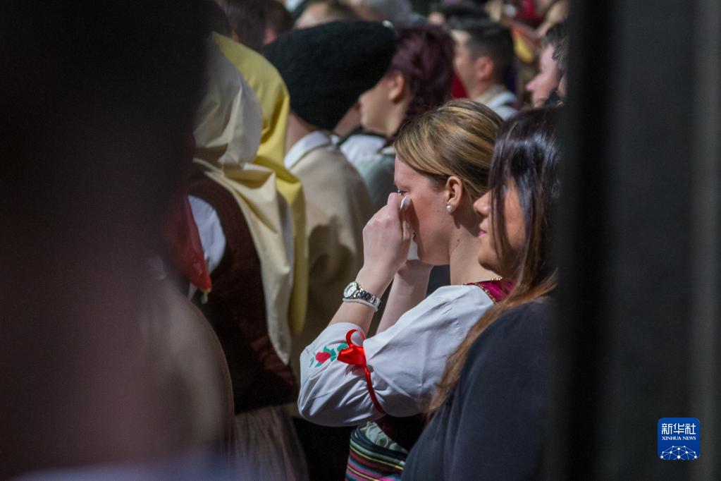 3月24日,在塞爾維亞北部城市松博爾,一名女子在悼念北約轟炸南聯(lián)盟遇難者儀式上拭淚。新華社記者石中玉攝
