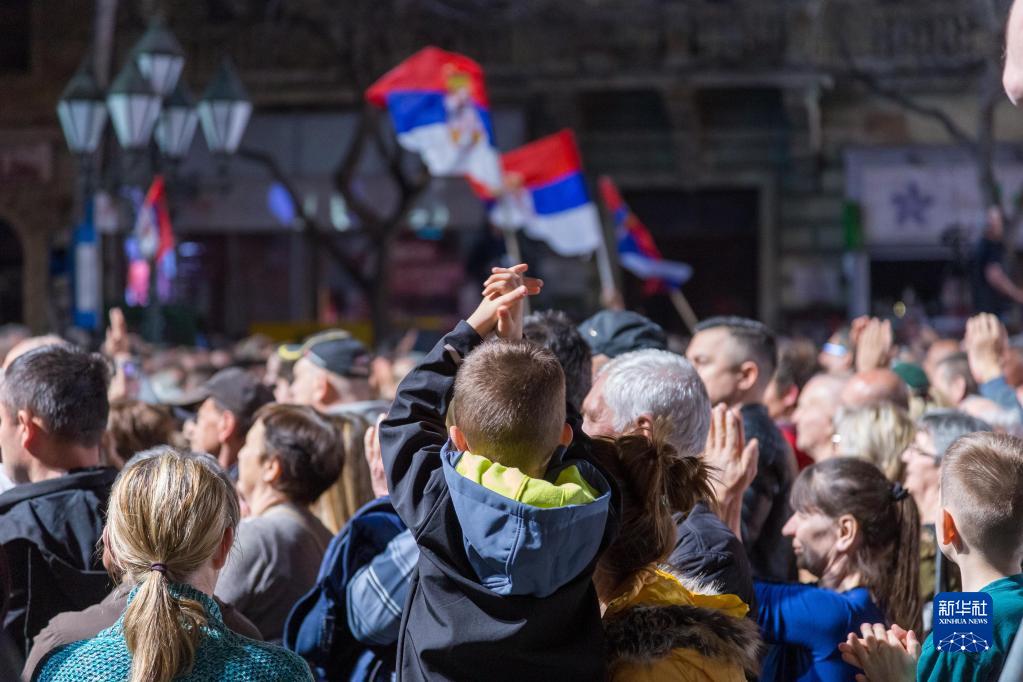 在儀式現(xiàn)場,主辦方拉響防空警報,并通過演出舞臺劇、播放紀(jì)錄片等方式重現(xiàn)24年前北約空襲時的情形。許多在當(dāng)年轟炸中失去親人的民眾掩面哭泣。