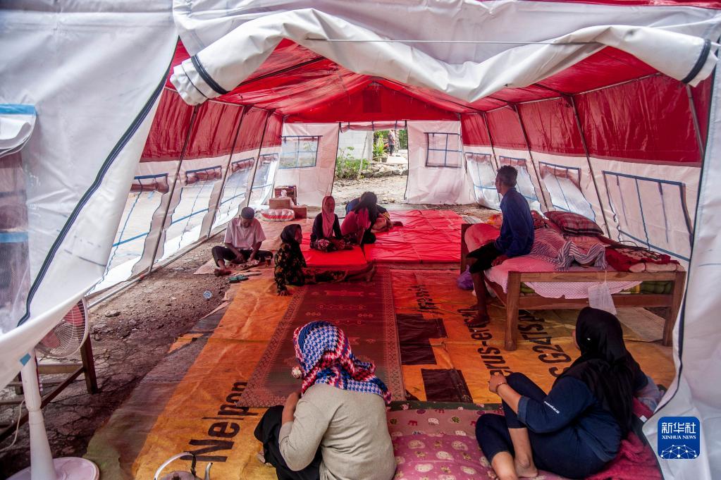 7月1日,在印度尼西亞日惹特區(qū)帕卡雷霍村,人們在臨時避難所內(nèi)躲避余震。