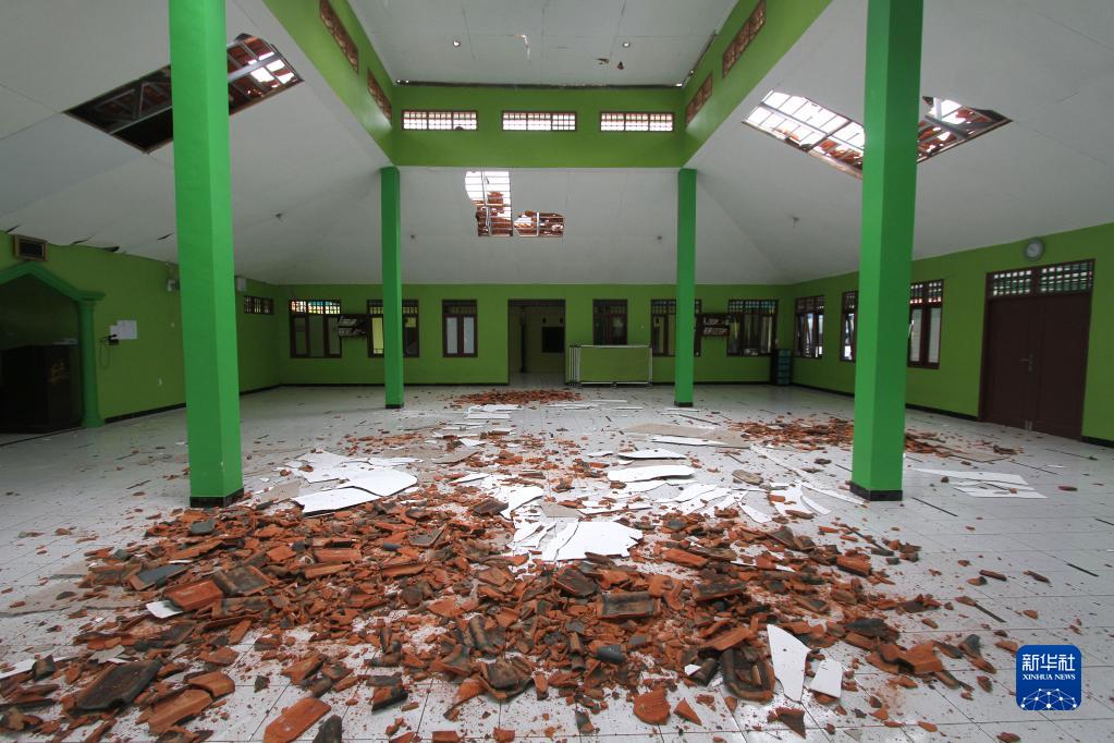 這是7月1日在臨近印度尼西亞日惹特區(qū)的中爪哇省普拉西曼托羅區(qū)拍攝的被地震破壞的校舍。