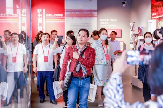 在廣播館,講解員為嘉賓們介紹了無線廣播的誕生史,以及現(xiàn)代通訊技術(shù)的發(fā)展歷程。在電視館,展出的早期電視機(jī)設(shè)備和相機(jī)藏品琳瑯滿目,嘉賓紛紛駐足拍照留念。講解員以春節(jié)聯(lián)歡晚會(huì)、北京奧運(yùn)會(huì)直播等典型案例為切入點(diǎn),介紹中國電視事業(yè)的發(fā)展歷程。