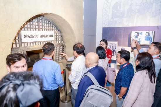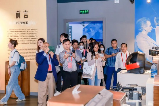 會(huì)議結(jié)束后,參會(huì)嘉賓在兩位英文講解員的帶領(lǐng)下,參觀了傳媒博物館,沉浸式感受中國傳媒大學(xué)的歷史變遷。展覽廳主要分為三大部分:廣播館、電視館和電影館。