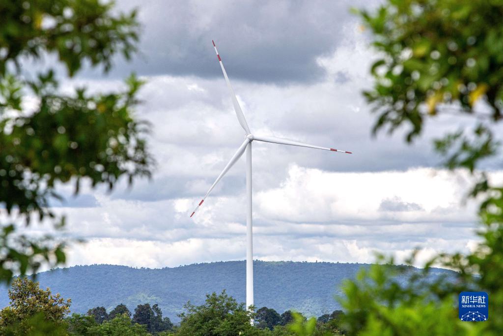這是10月5日在泰國猜也蓬府拍攝的由中國金風科技提供的風力發(fā)電機。