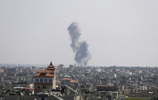 ↑這是10月7日在加沙地帶南部城市拉法拍攝的以色列軍隊(duì)空襲造成的濃煙。新華社發(fā)(哈立德·奧馬爾攝)