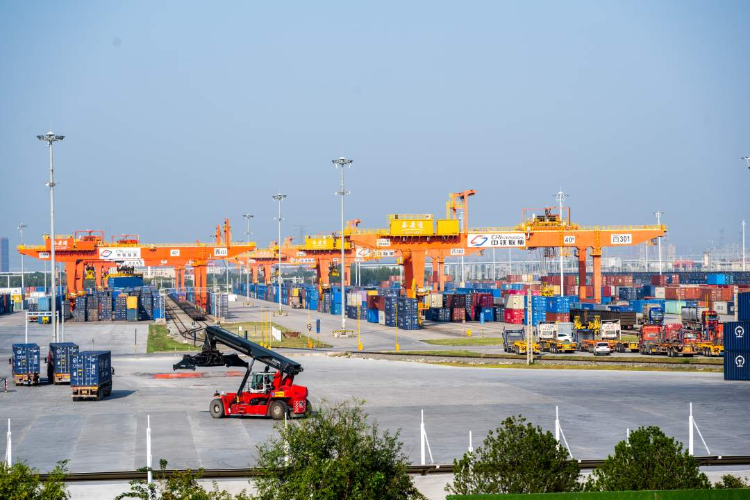 10月14日,2023“一帶一路”媒體合作論壇歐亞主流媒體考察團(tuán)來(lái)到西安國(guó)際港務(wù)區(qū)。站在高處眺望,不遠(yuǎn)處的龍門(mén)吊正吊運(yùn)集裝箱,映入眼簾的是一片繁忙的景象。