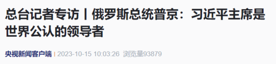 在采訪中,普京談到了他與習近平主席的交往。他表示,習近平主席是世界公認的領導者。