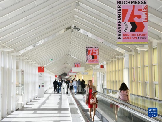 10月18日,人們走在德國(guó)法蘭克福書(shū)展展館內(nèi)。