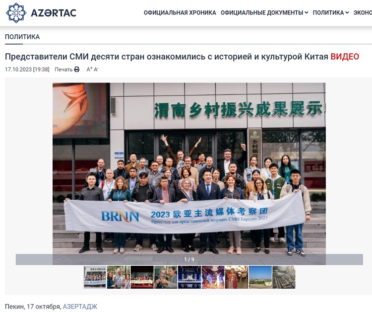 阿塞拜疆國(guó)家通訊社報(bào)道2023“一帶一路”媒體合作論壇歐亞主流媒體考察團(tuán)走進(jìn)陜西
