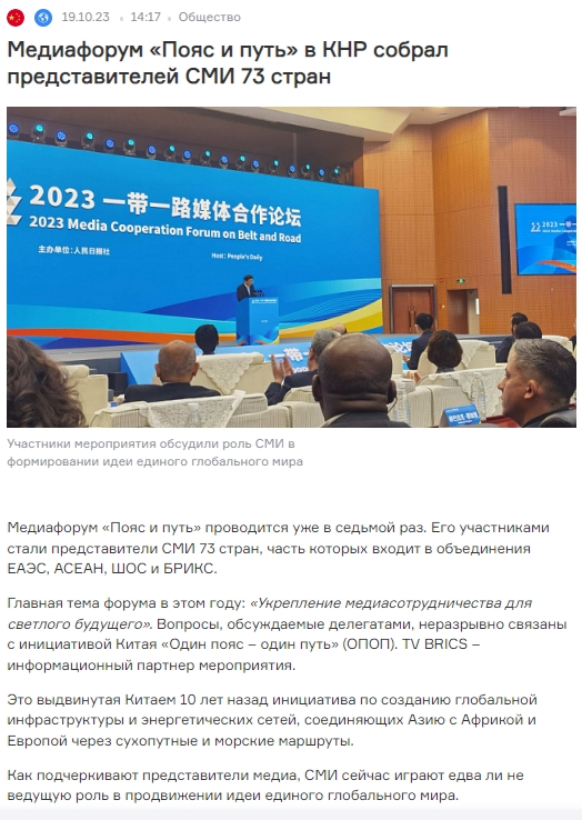 金磚電視臺(tái)報(bào)道2023“一帶一路”媒體合作論壇