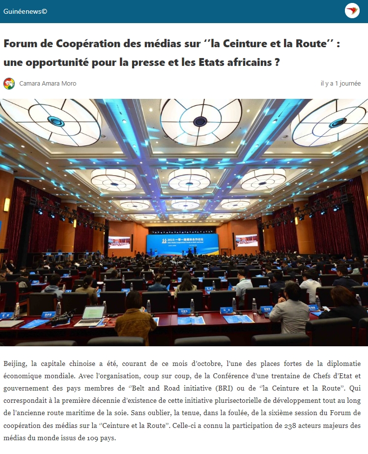 幾內(nèi)亞新聞網(wǎng)報(bào)道2023“一帶一路”媒體合作論壇