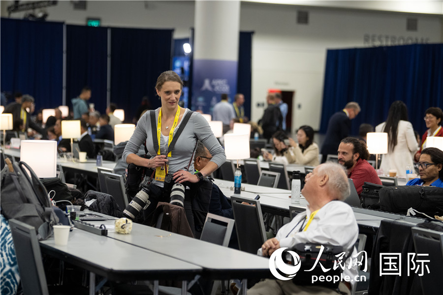 當?shù)貢r間11月16日,美國舊金山,在APEC國際媒體中心,媒體記者忙碌工作。