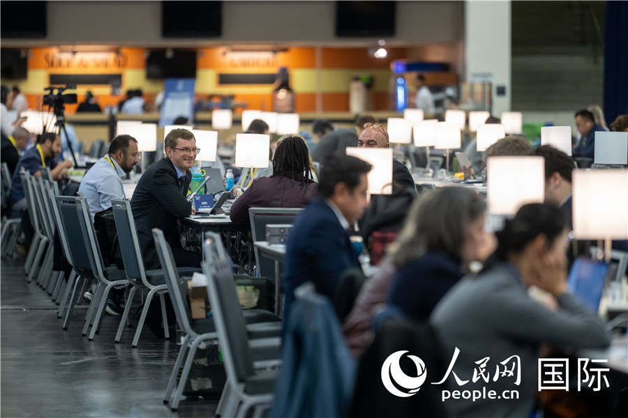 當(dāng)?shù)貢r(shí)間11月16日,美國(guó)舊金山,在APEC國(guó)際媒體中心,媒體記者忙碌工作。