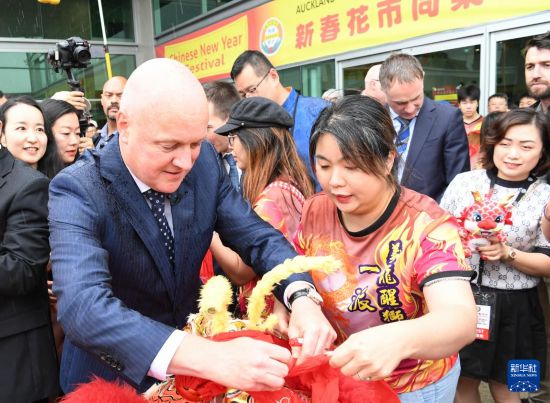 2月3日,新西蘭總理拉克森(前左)參加在奧克蘭舉行的“新春花市同樂(lè)日”活動(dòng),與數(shù)千名當(dāng)?shù)厝A人共迎龍年新春。這是拉克森去年11月就任總理以來(lái)首次參加當(dāng)?shù)厝A人社區(qū)大型活動(dòng)。新華社記者 郭磊 攝