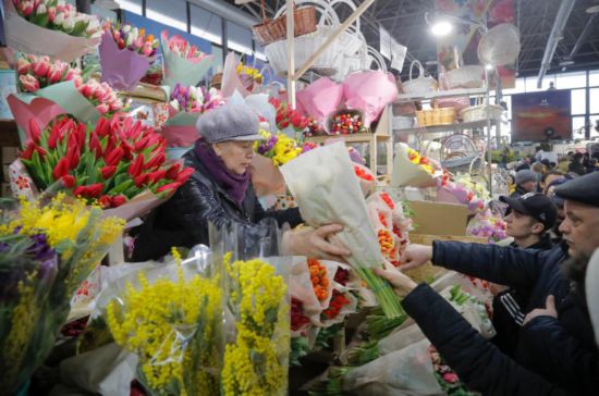 2023年3月8日,人們在俄羅斯首都莫斯科的市場購買鮮花。新華社發(fā)(亞歷山大攝)