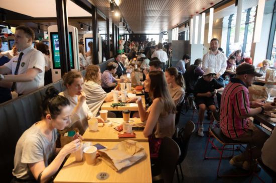 2022年6月12日,顧客在俄羅斯首都莫斯科普希金廣場的“只有美味”連鎖餐廳用餐。新華社記者白雪騏攝