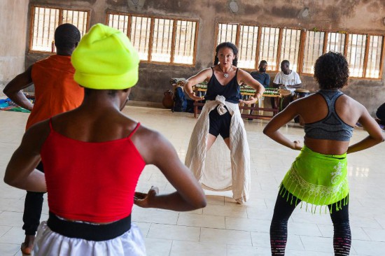 這是中國(guó)舞蹈演員蔣可鈺在喀麥隆首都雅溫得教年輕人跳舞。