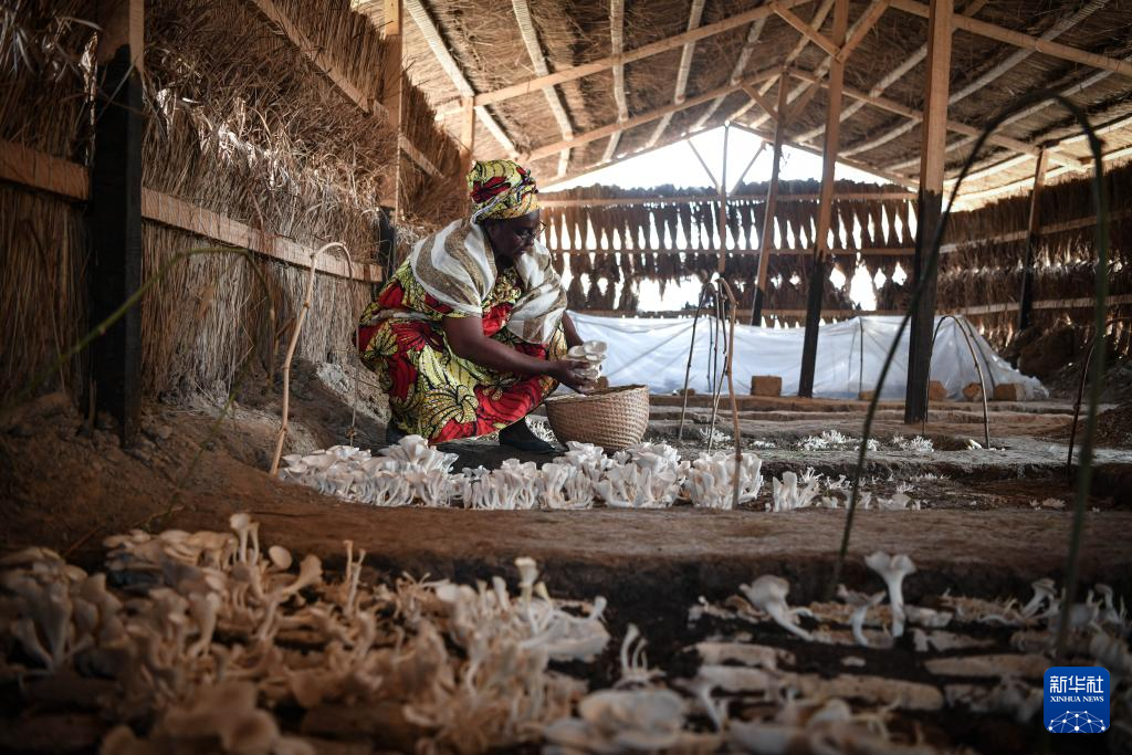 2月6日,在中非共和國達(dá)馬拉,法蒂瑪在菇棚內(nèi)收獲菌草菇。2022年,法蒂瑪在聽說中國菌草專家在班吉傳授技術(shù)后主動前往學(xué)習(xí),從一間小菌棚起步,逐漸擴(kuò)大為如今小有名氣的合作社。