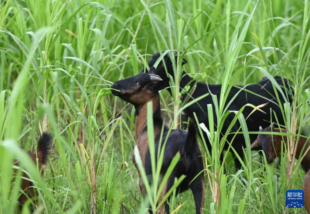 8月21日,在福建省永泰縣清涼鎮(zhèn)北斗村,以菌草為飼料養(yǎng)殖的富泉羊在“珍農(nóng)菌草富泉羊循環(huán)產(chǎn)業(yè)示范基地”里吃菌草。