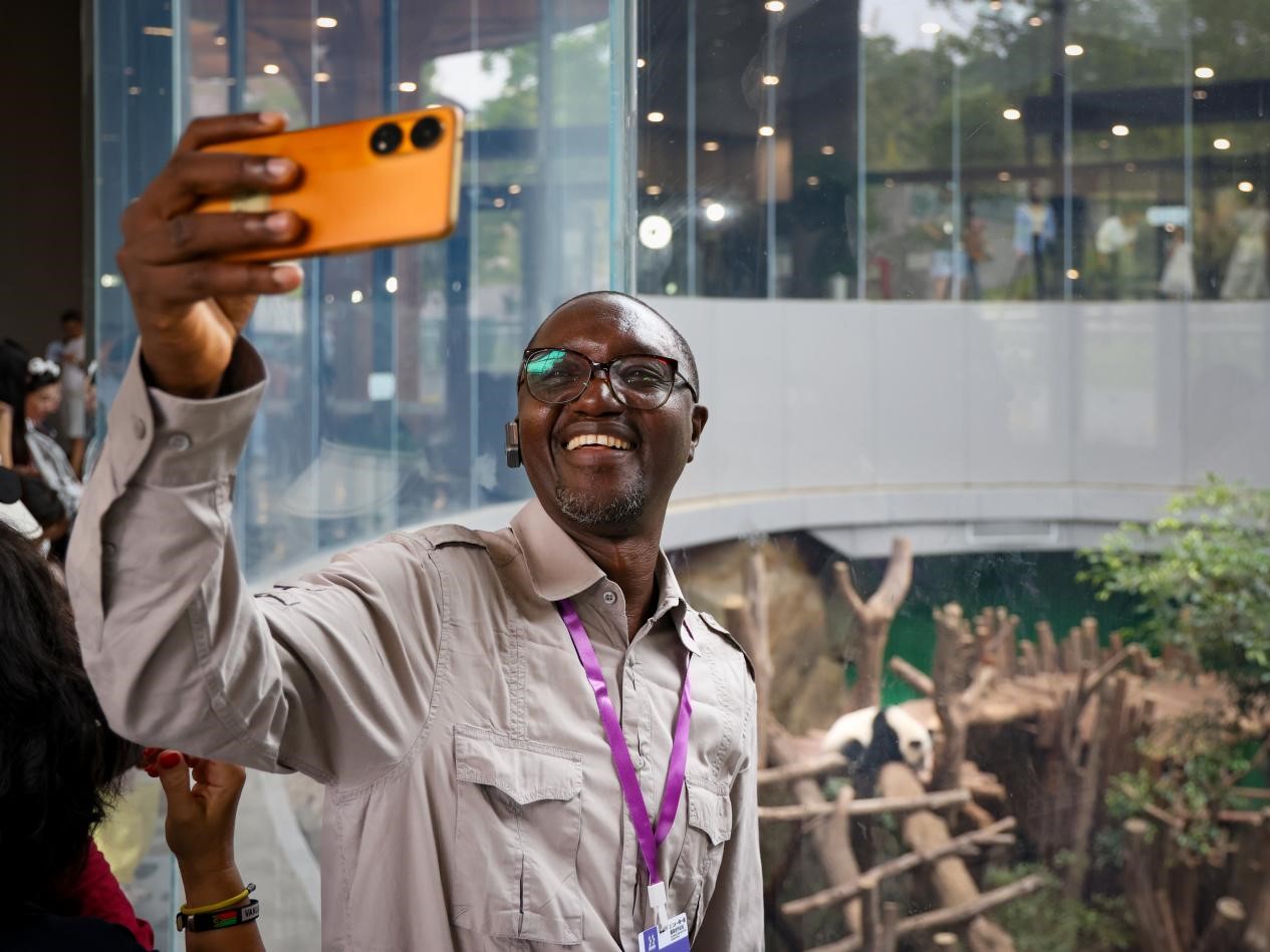 坦桑尼亞桑給巴爾廣播電視臺的阿布巴卡爾·哈爾!ぐ涂柺堑谝淮蝸淼街袊,也是第一次親眼看見可愛的大熊貓。他表示,大熊貓現(xiàn)在已經(jīng)成為中國的“外交大使”,也成為了中國和世界的友誼連接!白鳛橐粋記者,我也要努力成為非洲和中國、和世界的連接!