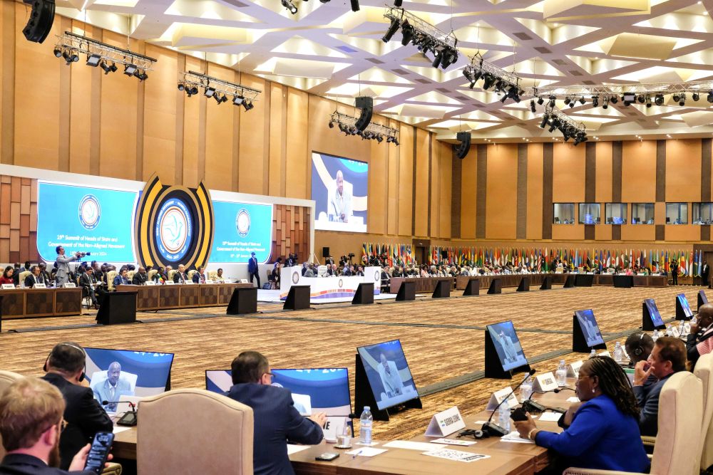 這是2024年1月19日在烏干達首都坎帕拉拍攝的不結盟運動第19次峰會開幕式現(xiàn)場。新華社發(fā)(阿佳拉·納瓦達攝)