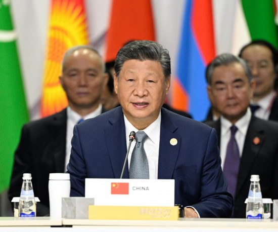 當?shù)貢r間10月24日上午,國家主席習近平在喀山會展中心出席“金磚+”領導人對話會并發(fā)表題為《匯聚“全球南方”磅礴力量 共同推動構建人類命運共同體》的重要講話。新華社記者 李學仁 攝