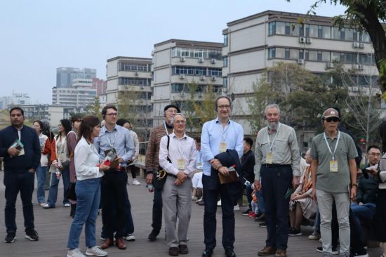 外籍專家學(xué)者沿木棧道登上城墻。經(jīng)濟(jì)日?qǐng)?bào)記者劉沛愷攝