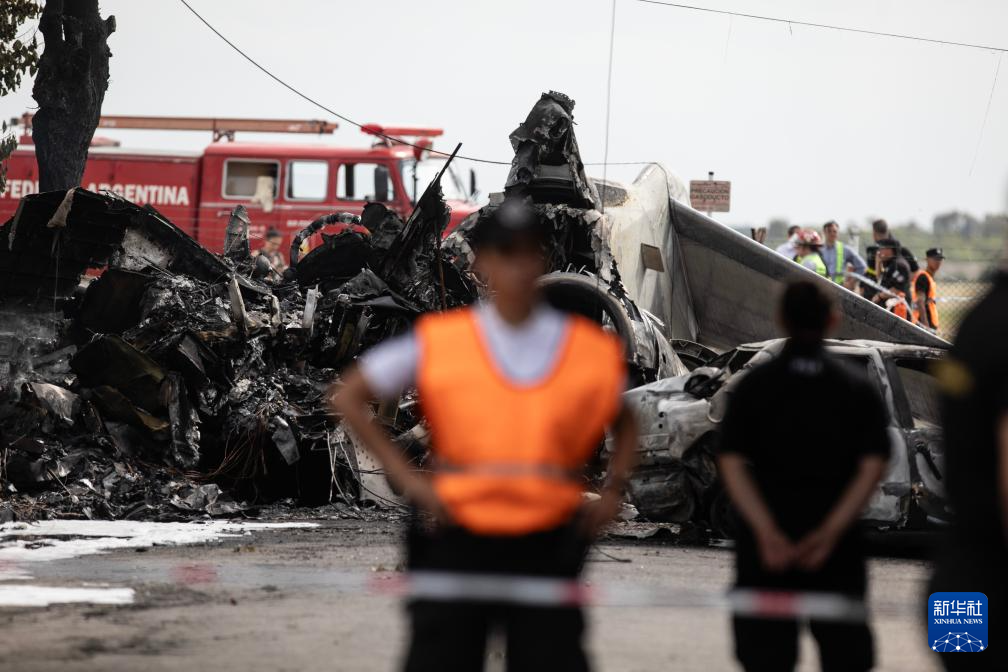 12月18日,在阿根廷東部布宜諾斯艾利斯省的圣費(fèi)爾南多機(jī)場(chǎng)附近,安全人員在飛機(jī)失事現(xiàn)場(chǎng)工作。