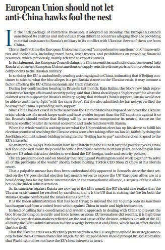 原標題:European Union should not let anti-China hawks foul the nest