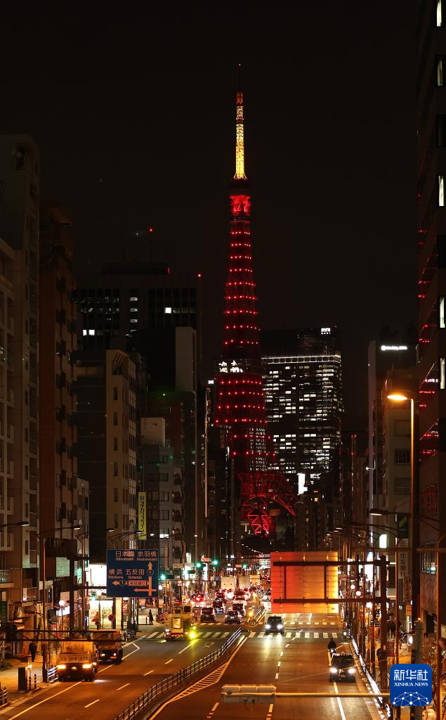 1月28日晚,日本東京的地標(biāo)性建筑東京塔點(diǎn)亮“中國紅”,慶祝中國農(nóng)歷新年。