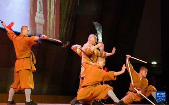 2月6日,在法國(guó)巴黎的聯(lián)合國(guó)教科文組織總部,演員表演少林功夫《和·合》。新華社記者 張百慧 攝