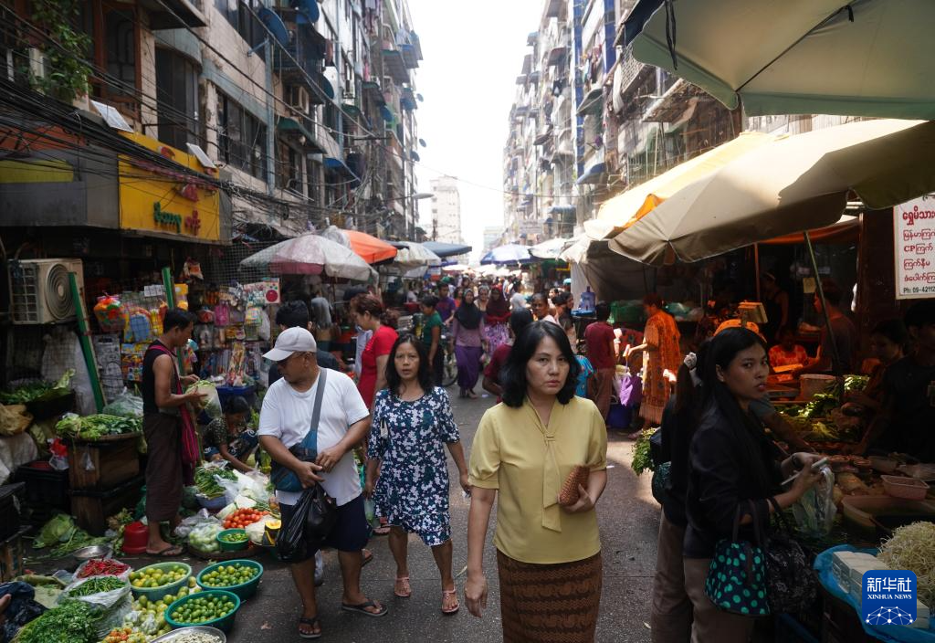 這是3月30日在緬甸仰光拍攝的一處市場。