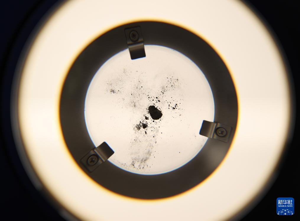 這是4月13日在位于日本大阪的中國館內(nèi)拍攝的嫦娥五號探測器采集的月球土壤樣品。