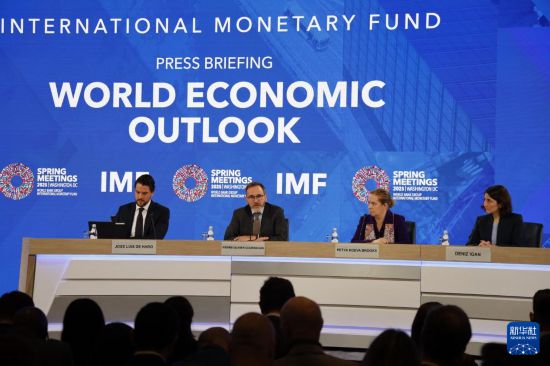 4月22日,國際貨幣基金組織(IMF)在美國華盛頓舉行《世界經濟展望報告》新聞發(fā)布會。新華社記者 謝鍔 攝