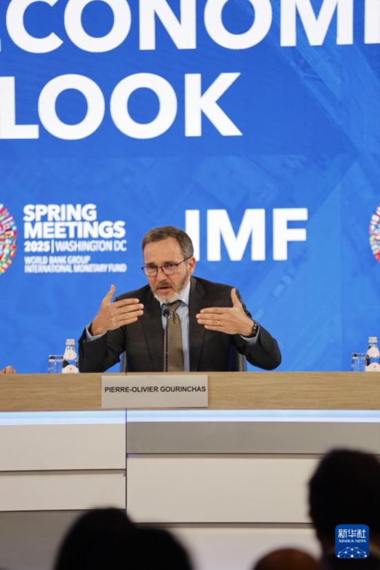4月22日,在美國華盛頓,國際貨幣基金組織(IMF)首席經濟學家皮埃爾-奧利維耶·古蘭沙出席《世界經濟展望報告》新聞發(fā)布會。新華社記者 謝鍔 攝