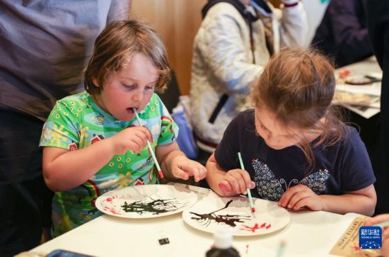 4月27日,在新西蘭克賴斯特徹奇,小朋友體驗(yàn)吹畫。新華社記者 龍雷 攝