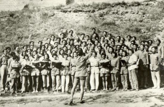 這是1939年冼星海指揮魯藝學(xué)員排練《黃河大合唱》的資料照片。新華社發(fā)(延安文藝紀(jì)念館供圖)