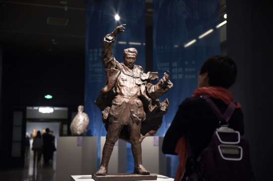 2018年4月1日,參觀者在北京的中國(guó)美術(shù)館參觀雕塑作品“冼星?!?。新華社記者 魯鵬攝