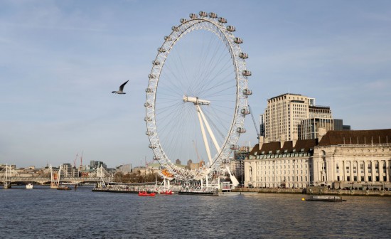 2024年1月28日,一只飛鳥(niǎo)飛過(guò)英國(guó)倫敦的倫敦眼。新華社記者 李穎 攝
