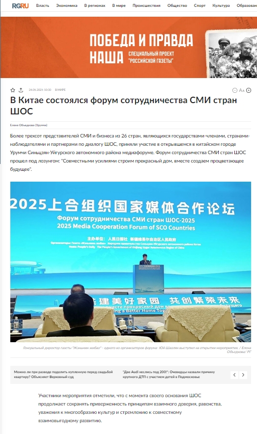 《俄羅斯報(bào)》報(bào)道2025上合組織國(guó)家媒體合作論壇