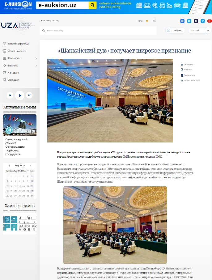 烏茲別克斯坦國家通訊社報(bào)道2025上合組織國家媒體合作論壇