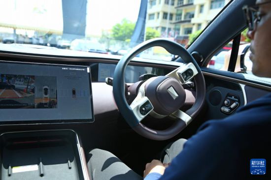 6月4日,在泰國曼谷舉辦的道路安全周活動上,試車員展示阿維塔汽車的自動泊車功能。新華社記者 孫瑋彤 攝