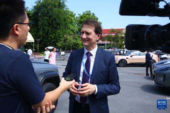 6月4日,在泰國曼谷舉辦的道路安全周活動上,聯(lián)合國世界車輛法規(guī)協(xié)調(diào)論壇自動駕駛與網(wǎng)聯(lián)汽車工作組主席里夏德·達姆接受新華社記者采訪。新華社記者 孫瑋彤 攝