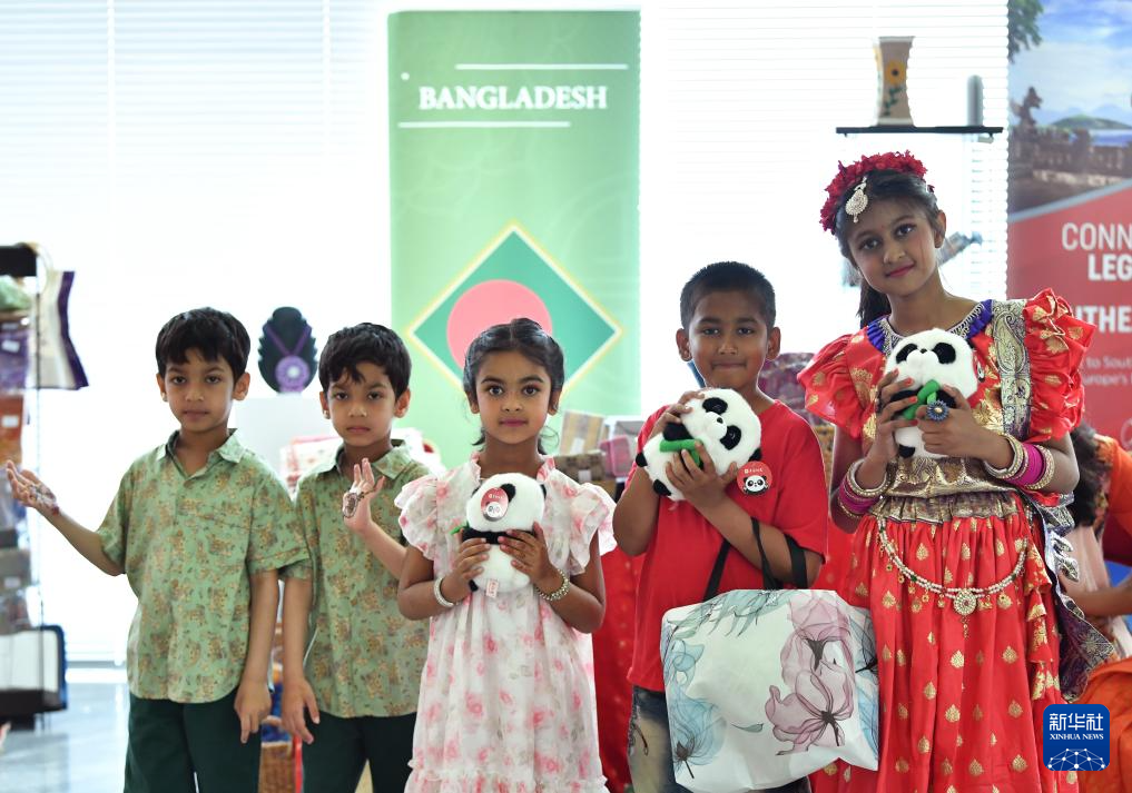 6月11日,在瑞士日內(nèi)瓦世界知識(shí)產(chǎn)權(quán)組織總部舉行的第五屆“亞洲文化節(jié)”上,來(lái)自孟加拉國(guó)的小朋友展示他們購(gòu)買(mǎi)的大熊貓玩偶。