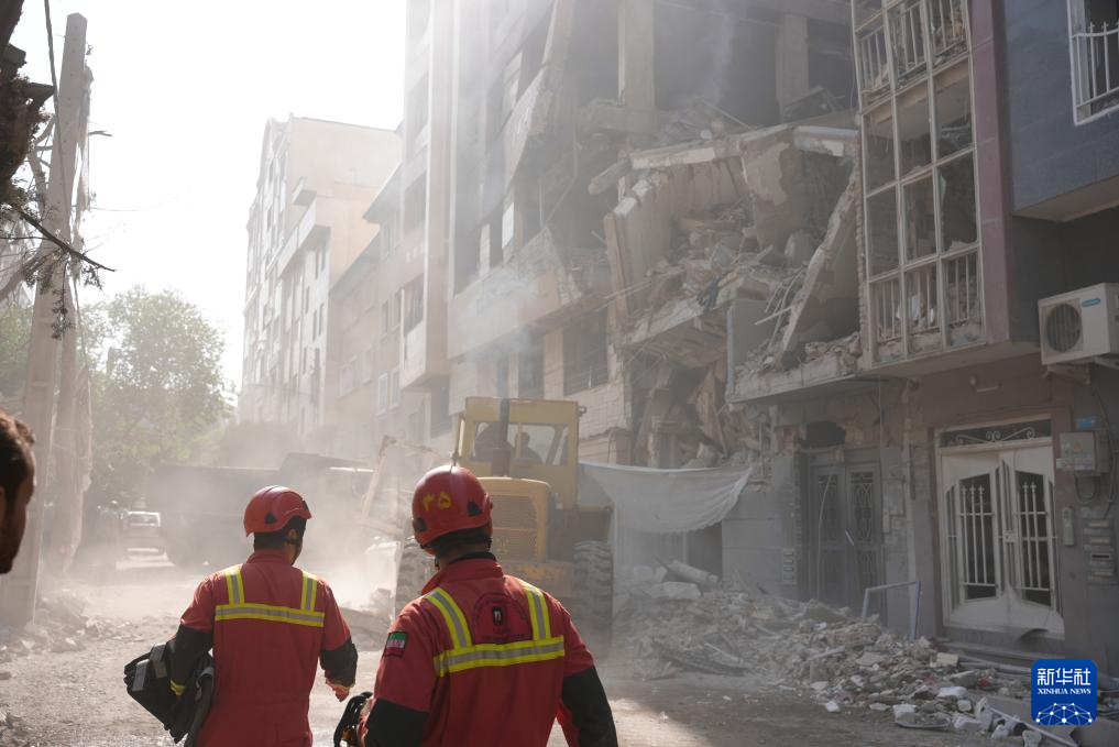 這是6月13日在伊朗首都德黑蘭拍攝的在以軍襲擊中受損的建筑。