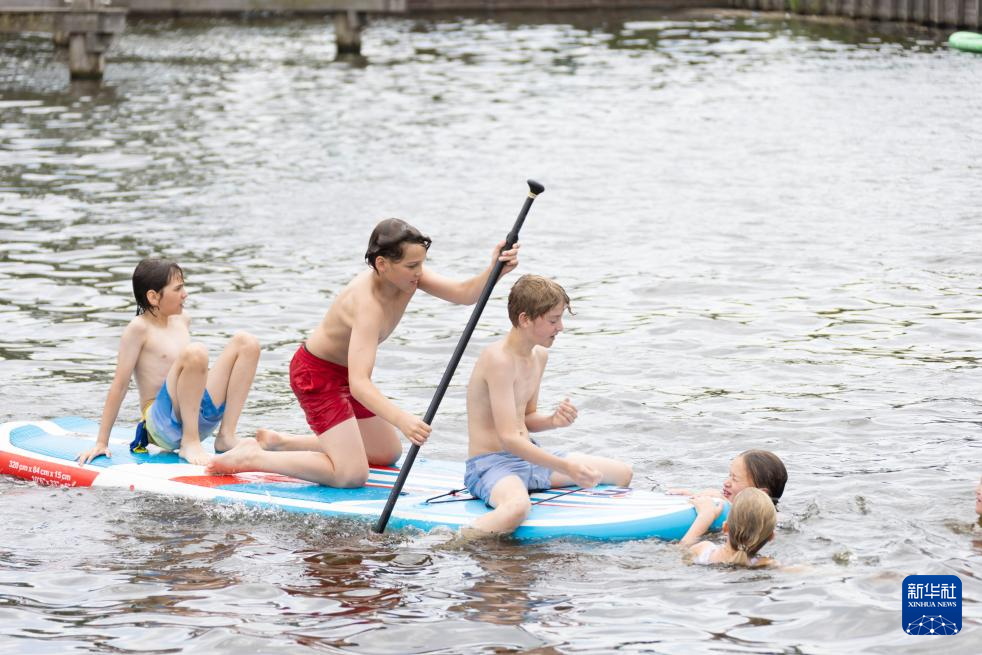 7月2日,在荷蘭哈勒姆,孩子們在水中納涼玩耍。