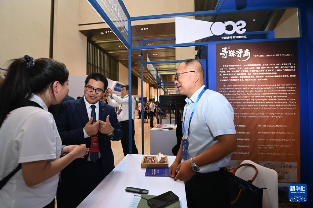 7月16日,參會代表在第二屆上海合作組織國家電視節(jié)活動現(xiàn)場了解山西廣播電視臺的視聽產(chǎn)品。
