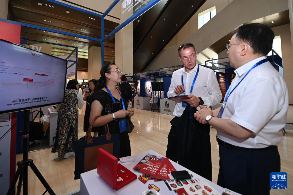 7月16日,參會代表在第二屆上海合作組織國家電視節(jié)活動現(xiàn)場雅文傳播展位參觀。
